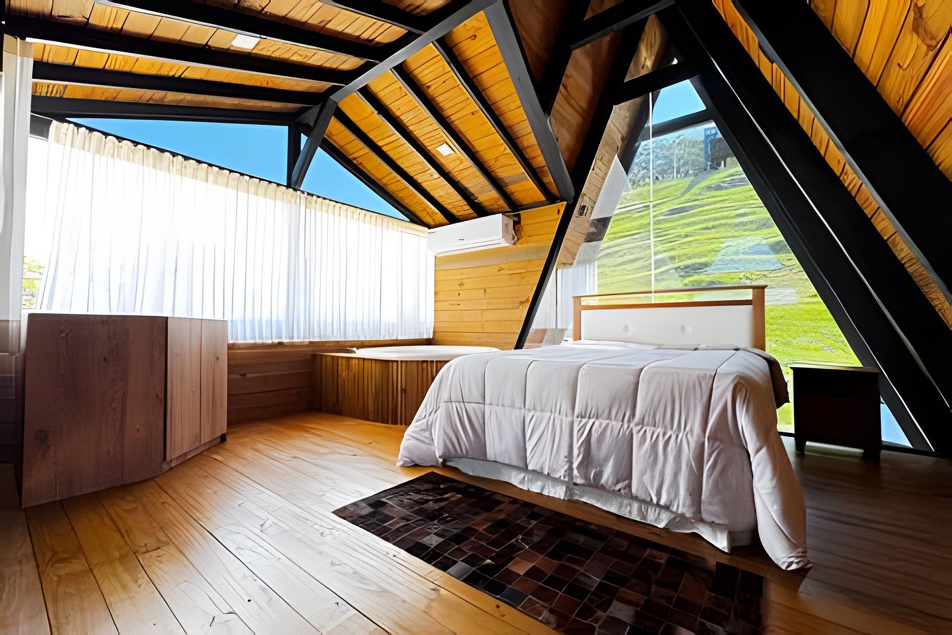 Você terá acesso exclusivo a todo o Chalé Lipsia e à sua área externa privativa, incluindo hidromassagem e churrasqueira. O estacionamento é no local. Para manter a privacidade de todos, pedimos apenas que respeite as áreas privadas: não é permitido acessar o deck ou áreas externas de outras unidades.