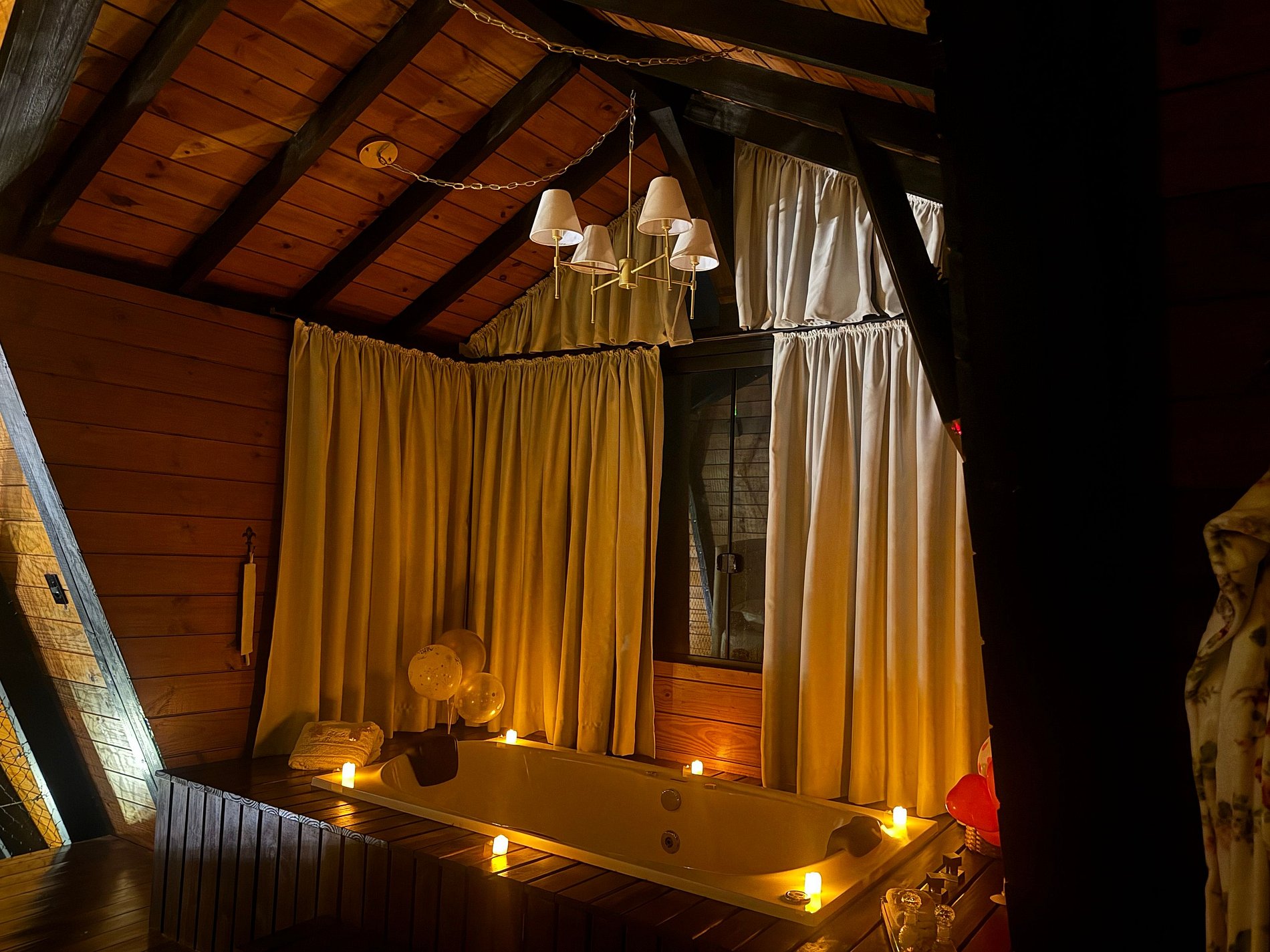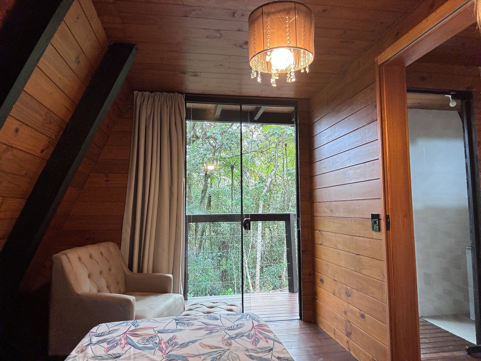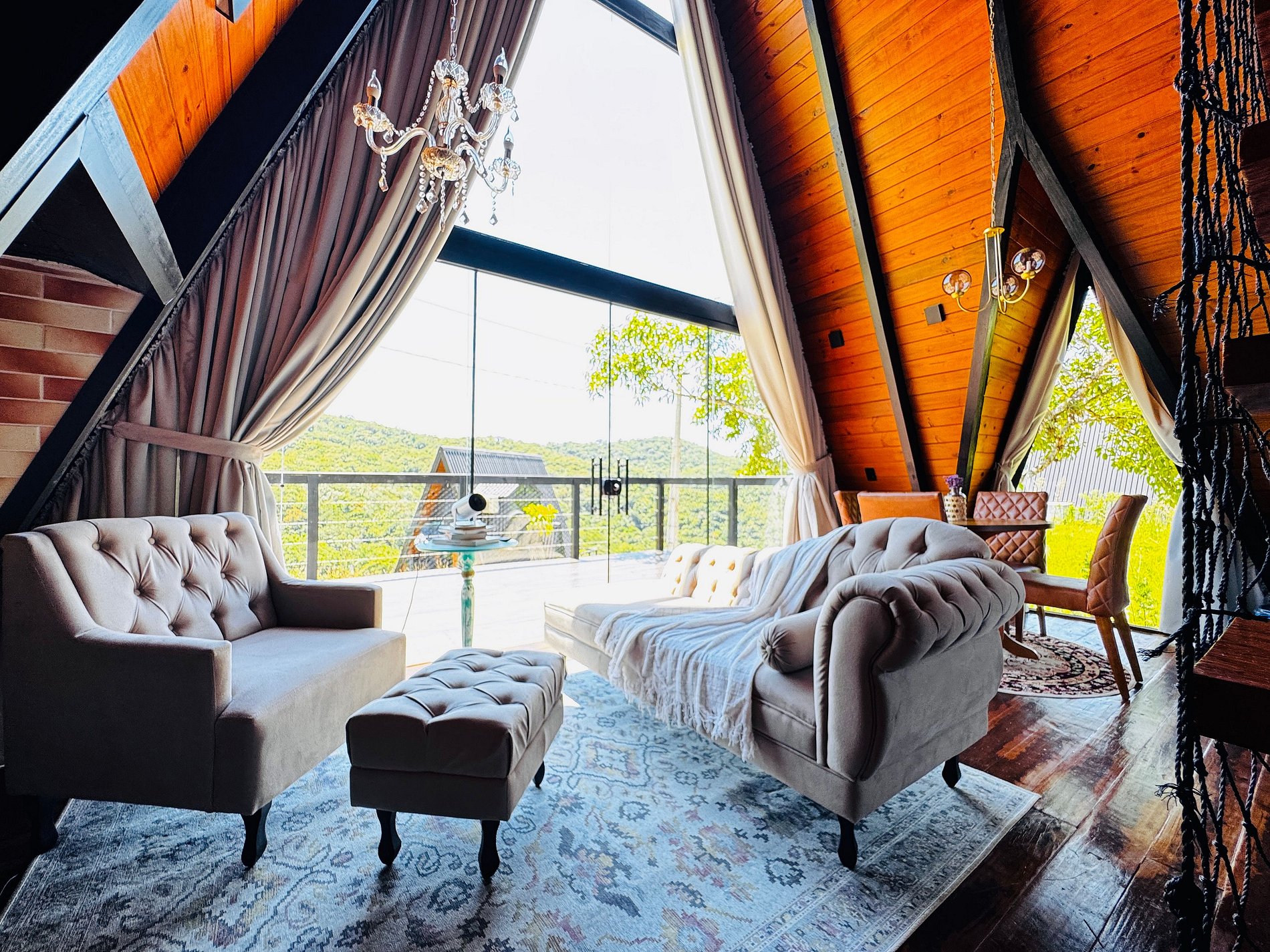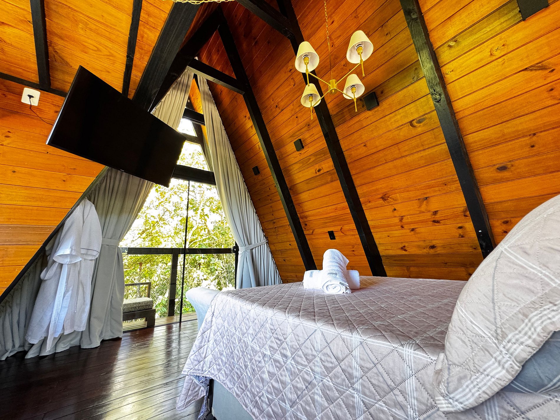 Imagine-se no topo das colinas, cercado pela natureza, respirando o ar puro da serra e sentindo a tranquilidade de um refúgio romântico, criado para renovar corpo e mente. Em meio ao silêncio e à vista incrível das montanhas de São Pedro de Alcântara, a cerca de 45 km do centro de Florianópolis, o Chalé Bonna proporciona o equilíbrio perfeito entre conforto e contato com o verde. A banheira de hidromassagem com vista para a mata, o design acolhedor e o cenário encantador garantem momentos de descanso, conexão e romantismo. Cada detalhe foi cuidadosamente pensado para que você possa desacelerar e viver uma experiência autêntica em meio à natureza.