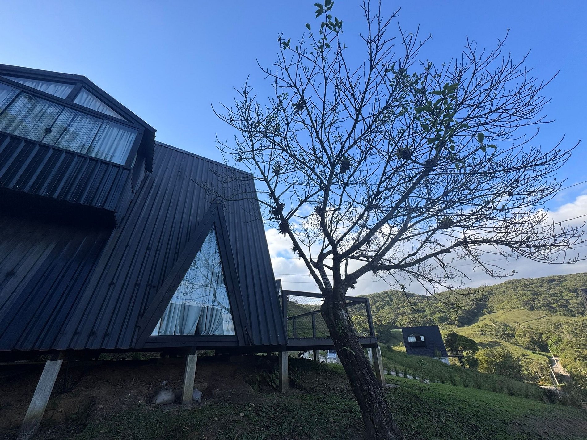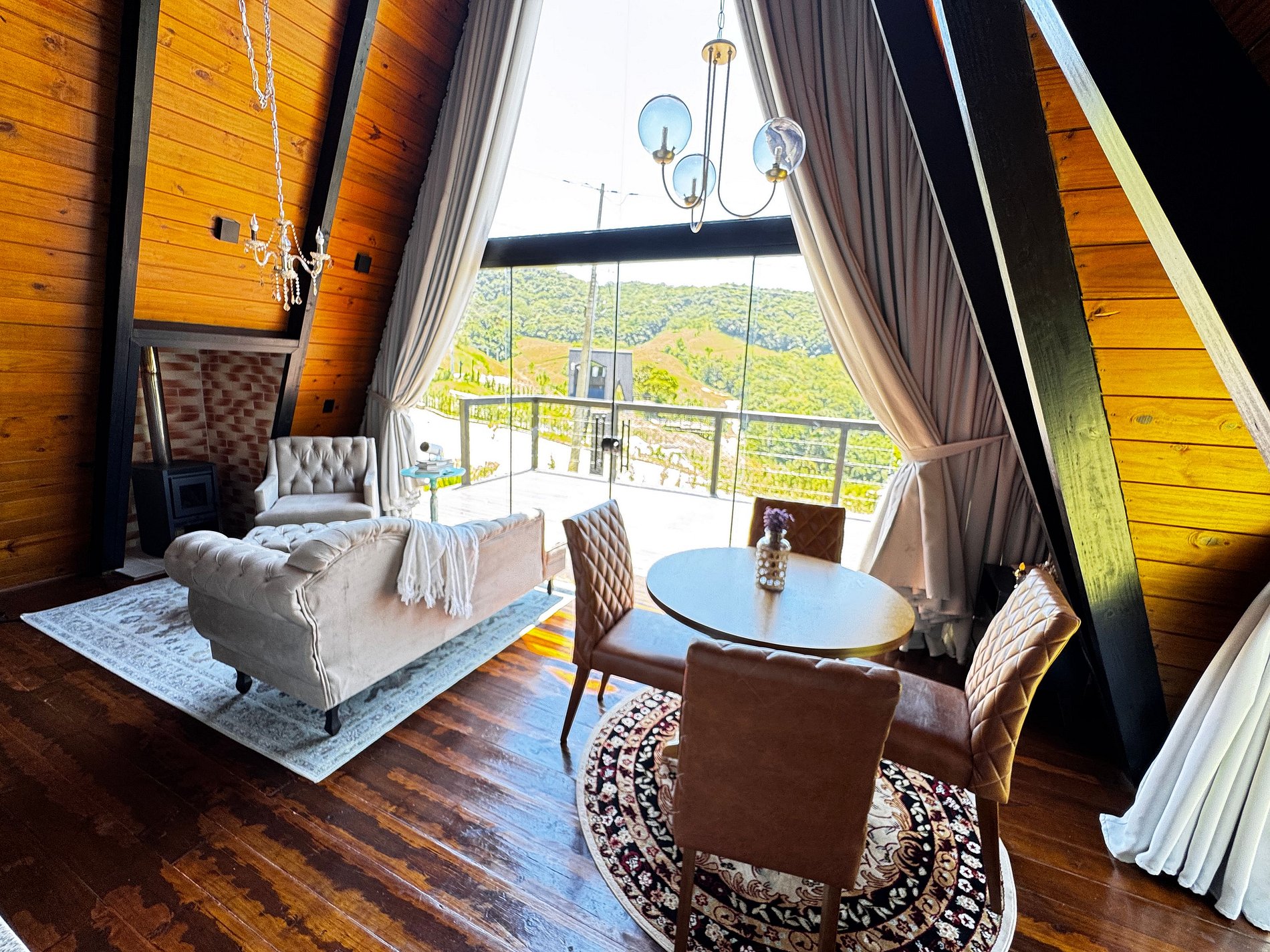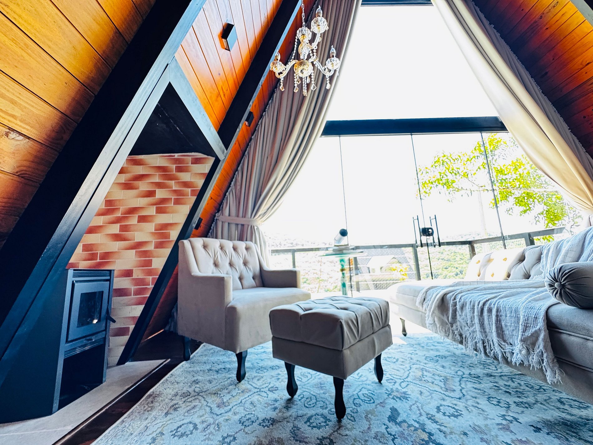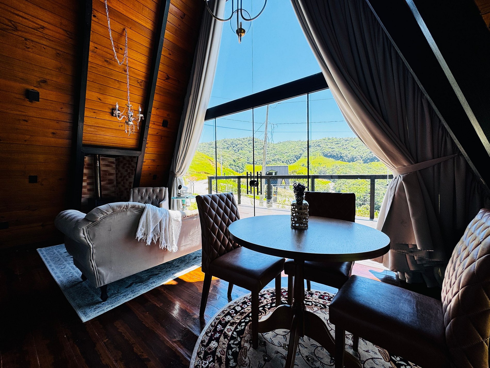 Imagine-se no topo das colinas, cercado pela natureza, respirando o ar puro da serra e sentindo a tranquilidade de um refúgio romântico, criado para renovar corpo e mente. Em meio ao silêncio e à vista incrível das montanhas de São Pedro de Alcântara, a cerca de 45 km do centro de Florianópolis, o Chalé Bonna proporciona o equilíbrio perfeito entre conforto e contato com o verde. A banheira de hidromassagem com vista para a mata, o design acolhedor e o cenário encantador garantem momentos de descanso, conexão e romantismo. Cada detalhe foi cuidadosamente pensado para que você possa desacelerar e viver uma experiência autêntica em meio à natureza.