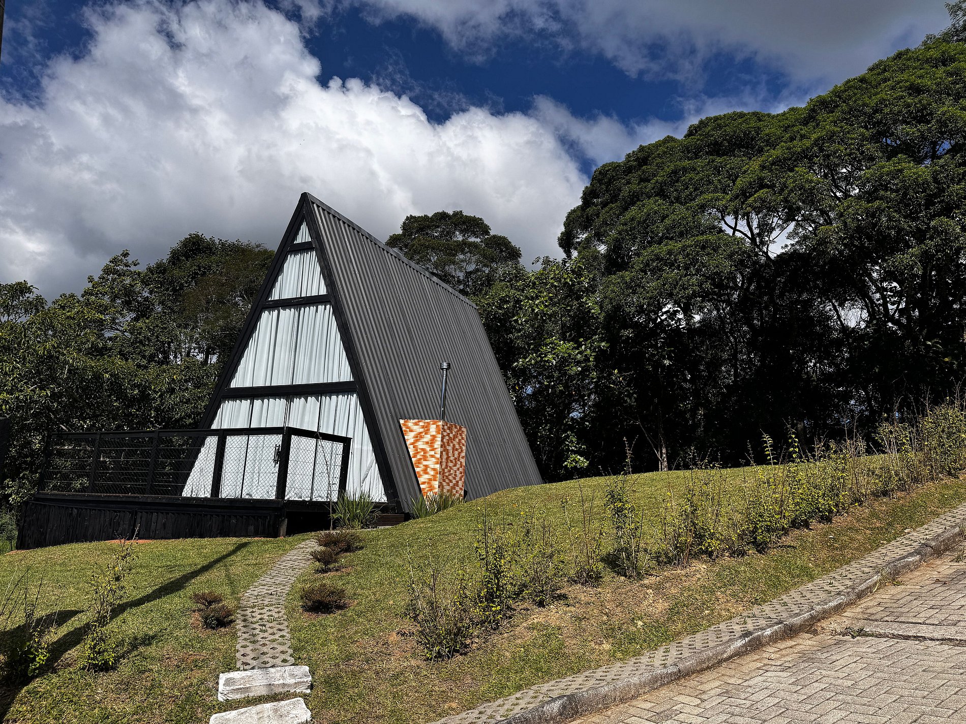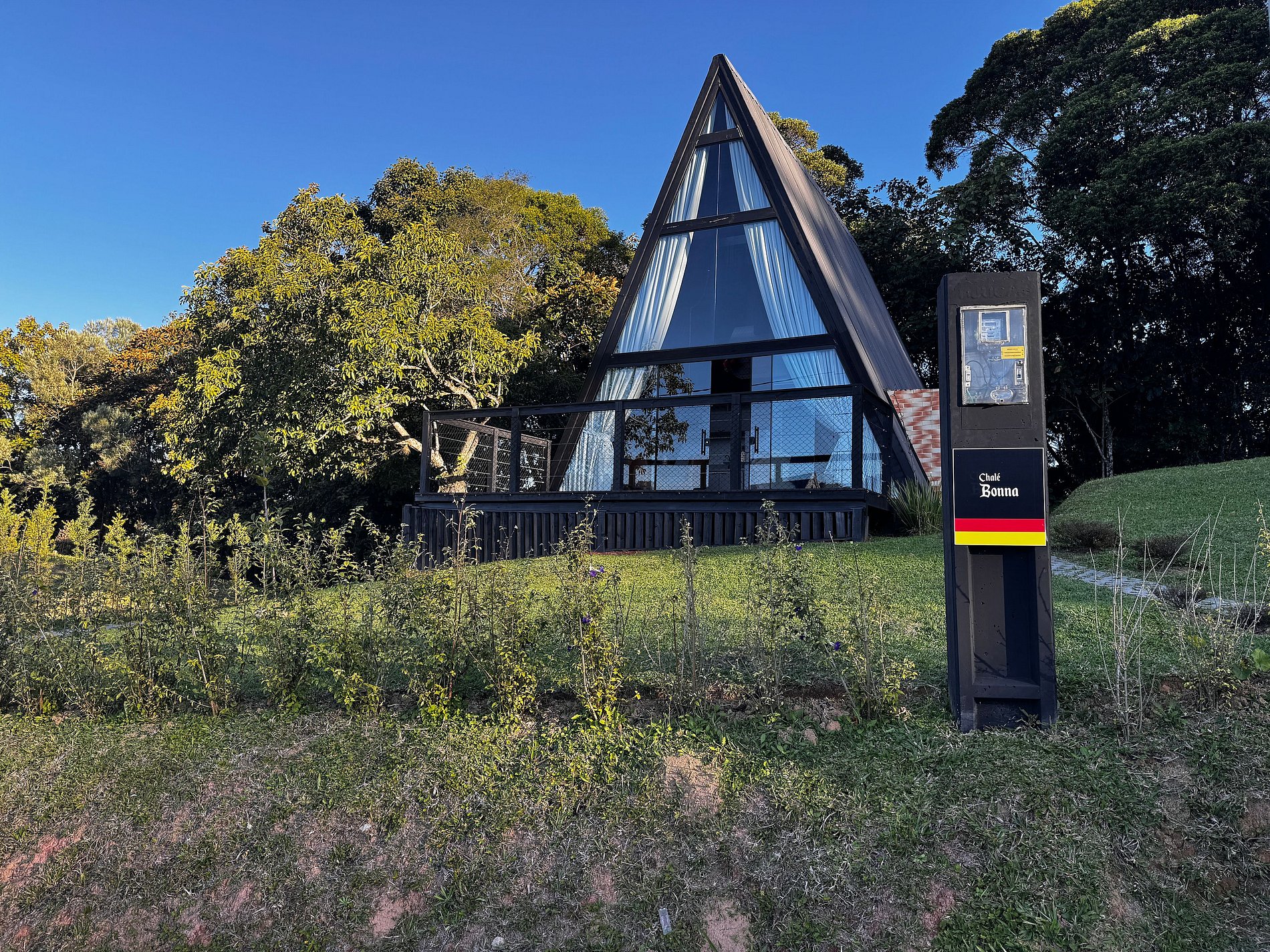 O chalé está localizado a cerca de 15 km dos centros de Santo Amaro da Imperatriz e de São Pedro de Alcântara, em um vale tranquilo cercado por colinas verdes e natureza preservada, um verdadeiro refúgio a poucos quilômetros da capital catarinense.