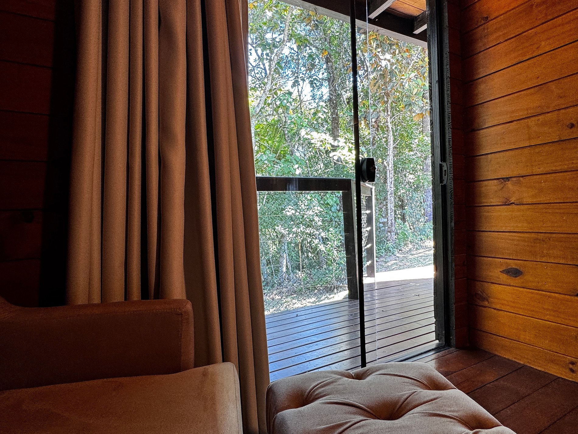 - O horário de silêncio vai das 21h às 8h. Isso garante uma experiência mais imersiva e relaxante para todos. Por ser um chalé de madeira, a acústica não oferece isolamento total, e também temos vizinhos próximos, por isso, pedimos carinho e atenção com os ruídos durante esse período.